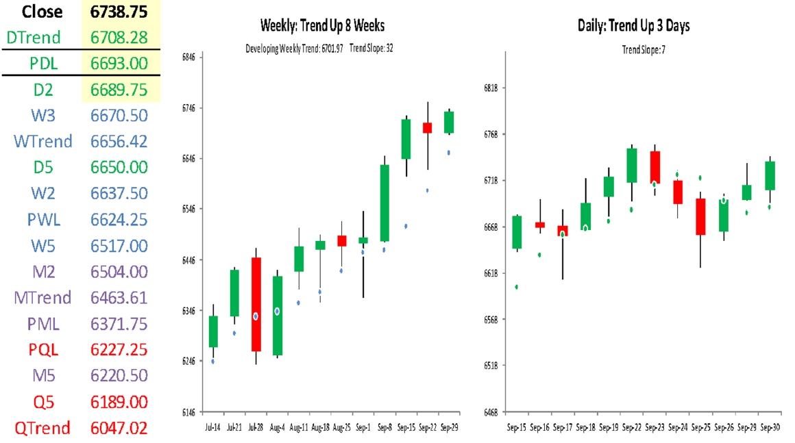 Active traders can use PMH: 6756.75 as the pivot. Traders should maintain a long position above this level and adopt a flat or short position below it.